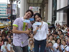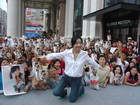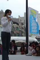 這場簽唱會,只有兩個字形容:「幸福」--不但讓大家見識到台上與台下和樂融融的景象,就連天氣都感受到現場幸福的氣氛,從訪問、唱歌到簽名結束,完全沒有再下一滴雨,而且阿,聚集的群眾超多,買專輯的人也超多,當天總共賣出八十幾張的好成績喔!讓唱片公司及賣唱片的攤位都笑得合不攏嘴啦!