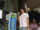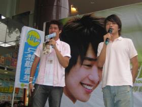 下午3:30高屏電台主持人DJ Hugo開始暖場,感謝高雄太平洋SOGO提供的10份小禮物送給熱情的粉絲, 眼看人潮聚集越來越多了!DJ Hugo也一直發揮他主持人的暖場功力,讓現場氣氛很High喔!!